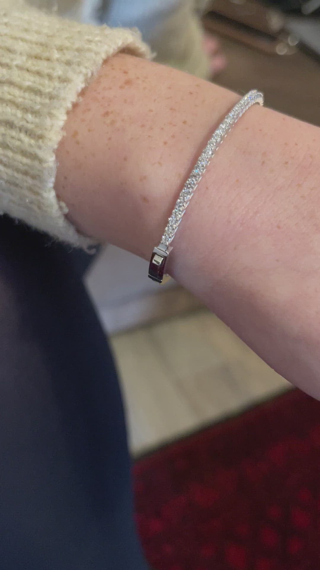 Bangle Diamonds Bracelet made in 14k or 18k gold features 33 clear diamonds.